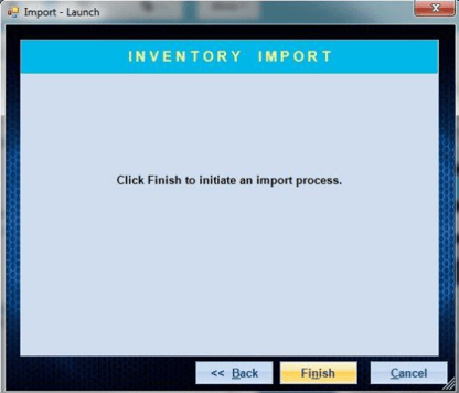 - The final window is the Launch window. When the Finish button is clicked on this window MiMS will proceed to do all the comparison and update/add items in the inventory.