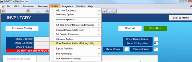 **Before using the Merchandise Retail Pricing Utility BACKUP your MiMS data. In the event that this does not work correctly, you will want to restore your data back to before running this utility.