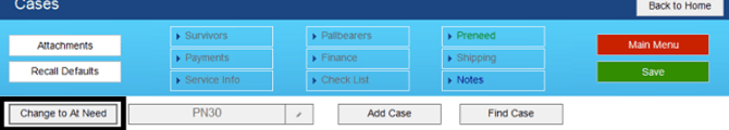 To convert a pre-need to an At-need all you have to do is go into “Additional Information” and then click on the “Change to At-need” button.
