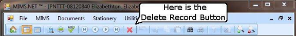 First, under the MiMS Menu there is an option at the bottom for “Delete Case” or, you can use the Delete Record button located roughly under the Utilities menu.