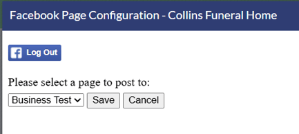 Once you have signed in and connected your Facebook account, you will be asked to select a page from your Facebook account to post to. Simply select the business page from the dropdown list and click the save button to connect that page.