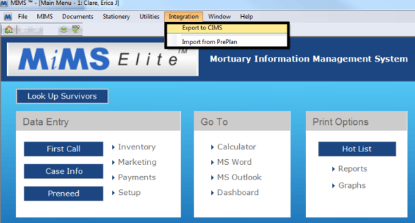 This feature is used to be able to create a file of your MiMS data to send and import into Twin Tiers Technologies CIMS (Cremation Information Management Software) program.