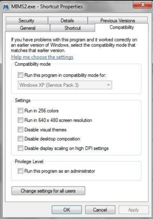 - Once the box is checked click on the button for Change settings for all users and check the same “Run this program as an administrator” in the new window.