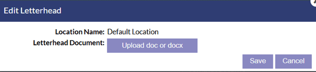Clicking the “Edit Letterhead” button will display a pop-up window, which will then ask for a .doc or .docx file to be uploaded. Upload the letterhead document from your computer and click the save button to save it to that location.