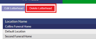 To remove a letterhead from a location, simply click on the location you wish to remove the letterhead for and select the “Delete Letterhead” button.