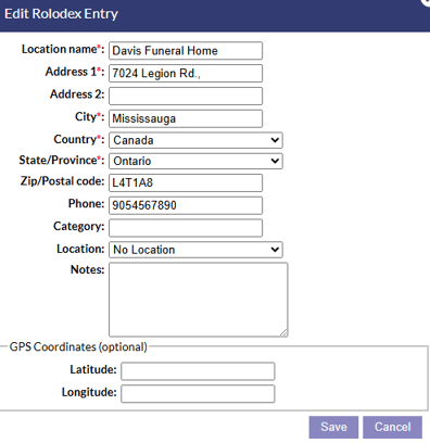 The rolodex on Funeral Tech websites is where all of the locations used on records in your system are stored.