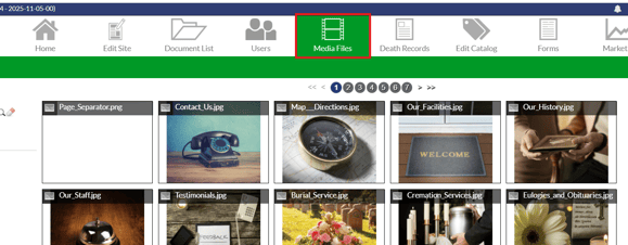 The media files section of the admin dashboard is where every image and video that is uploaded to the system is stored.