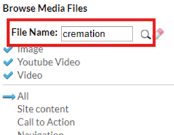 There are a few different ways you can search through your database of media files. Using the Search Bar, you can type in the name of the file you are looking for and then click on the