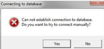 - Click on the “Yes” button and a new Database Server connection window will appear.