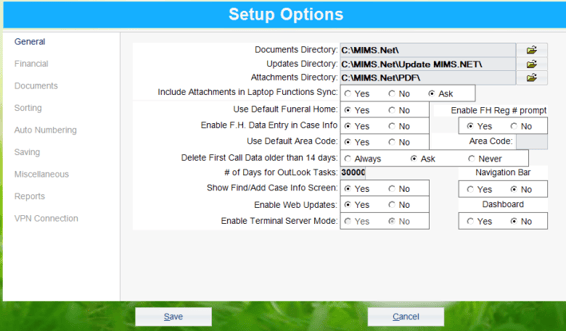 **Please note the Update and PDF Directories are pointed to a sub-folder of the MiMS Elite folder.