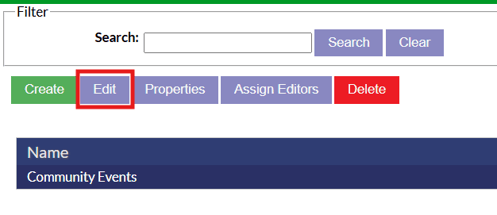 To enter into a category and added entries to appear on the website, highlight the category and click the edit button.