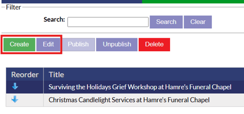 The news and events feature on Funeral Tech websites allows for news and events items to be displayed on website pages.