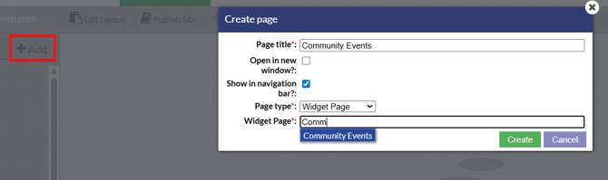 There are two ways that you can set up the news and events entries to display on your website. A widget page can be created using the category of events you want to display. To do this, click the add new page icon in the website editor, select the widget page type and type in the name of the events category from the manage news and events section to fill the page with. A page on the website will now be created that will display any event that is within that category of the news and events section.