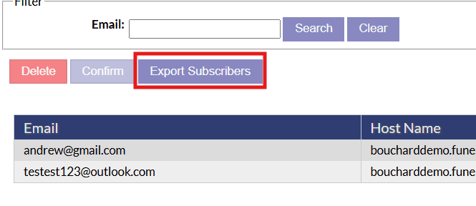 If you ever need to export your subscriber list, the "Export Subscribers" option will generate a csv file of all the emails in your subscriber list.