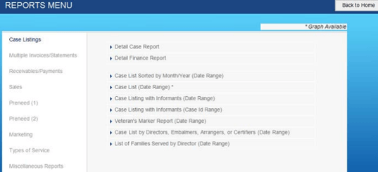 MiMS comes with an extensive list of pre-defined reports. These reports have been designed specifically to give the funeral director information helpful to making important management decisions.