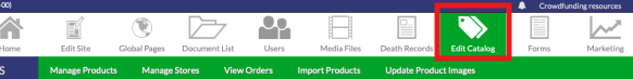 In the green sub menu, pages can be navigated for making changes to various components of the catalog.