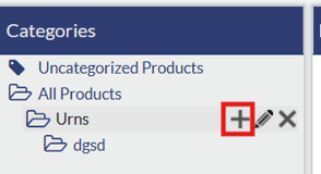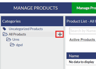 To create a Parent Category, click on “All Products” in the left column of the Manage Products page, and then the grey plus sign. Enter a name, image and a short description. Click “Save”.