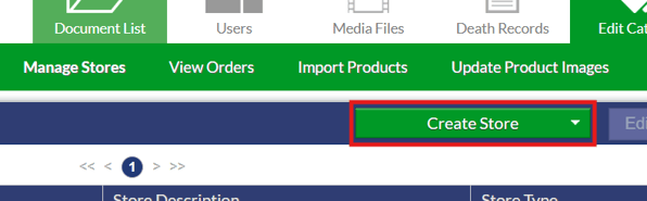 To create a new store, click the "Create Store" button and select the the Product Catalog option. The E-Commerce and Remembrance Store options are no longer supported and should not be used.
