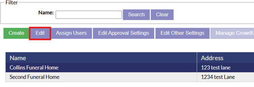 Clicking the “Delete” button will allow you to remove the funeral home location from the Family Arranger system completely.