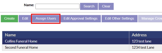 Clicking the “Assign Users” button will allow you to set specific users to have access to records for the assigned locations.
