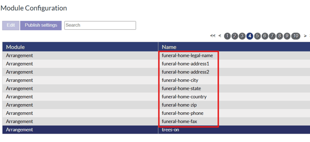 Once in the Module Configuration screen, input fields are available to enter in the funeral homes information (usually on Page 3 and 4).