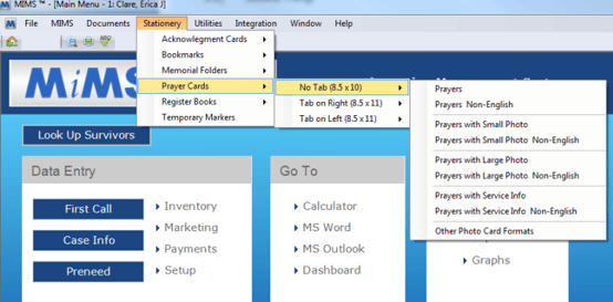 MiMS offers a variety of pre-loaded stationery template options for acknowledgment cards, bookmarks, memorial folders, prayer cards, register books and temporary markers.