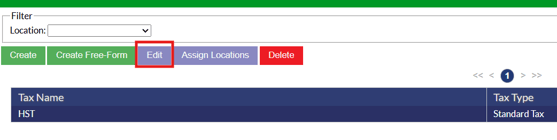 If you need to edit an existing tax, highlight the tax in the list and click the "Edit" button.