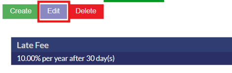 If you need to edit an existing late fee, select the late fee from the list and click the "Edit" button,