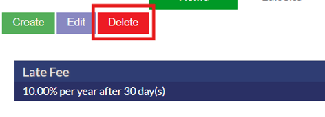 To delete a late fee, select the late fee in the list and click the red delete button.