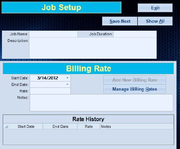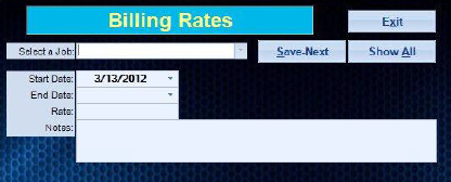 The Billing Rates area is designed so you can adjust billing rates without having to go into the Job Setup or Employees areas.
