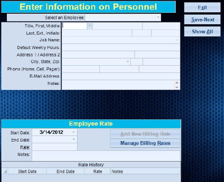 Billing Rate: You enter in or update the employees pay rate here.