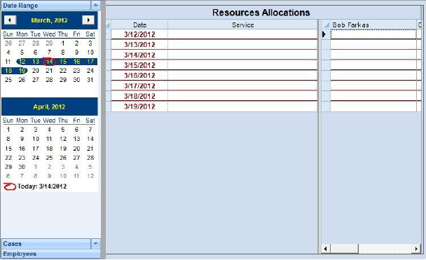 The Resource Allocation area is designed to help the funeral say which employees are working during what times, what jobs the employees are doing, and if applicable what case the work is related too.