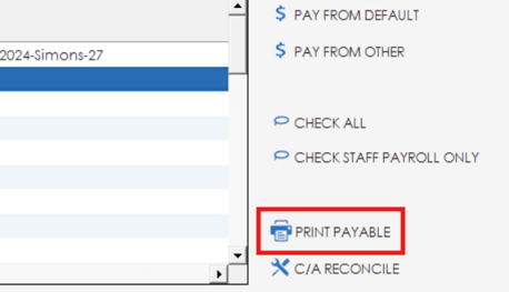 To print a list of all payable items in the payables list, click the "Print Payables" icon.