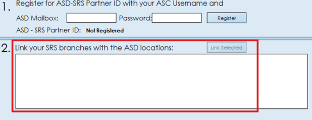 Once the ASD account is connected, step 2 will allow you to link specific branches in SRS with the various ASD locations.