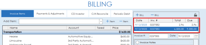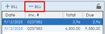 To remove an invoice, simply highlight the invoice in the list and click the bill button with the minus icon.