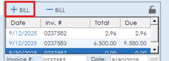 To add a new invoice, click the bill button with the plus icon at the top.