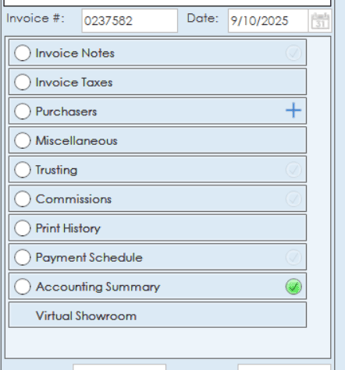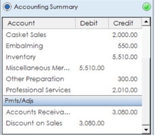 Under the accounting summary section, a quick summary of the various invoice items will be displayed including discounts, adjustments and totals.