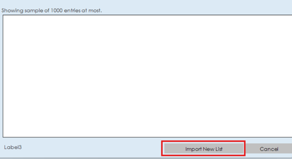 Once you have imported a file, a sampling of the entries will be shown in the bottom section of the window. Click "Import New List" to import the list into the system.