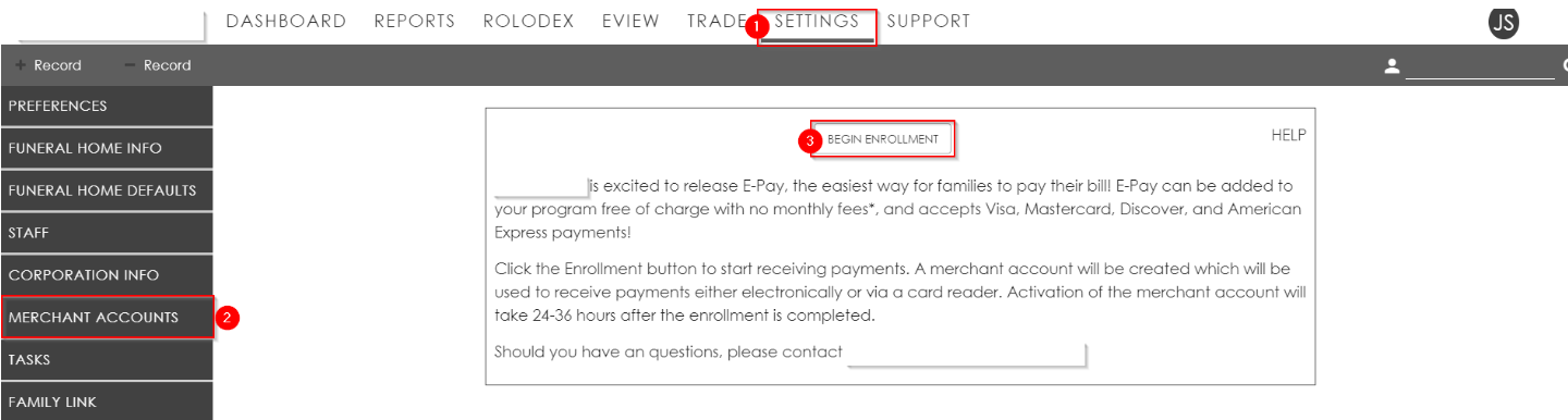 As part of the setup process, Merchant Accounts need to be setup before E-Pay can be used.