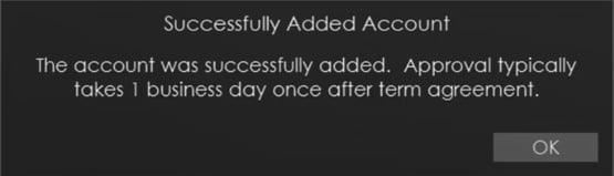 A confirmation will appear to verify each account was added successfully.