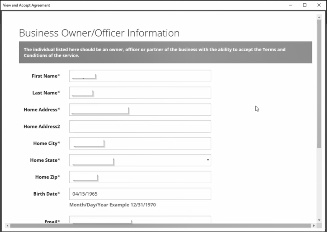 View and Accept Agreement to complete the application.