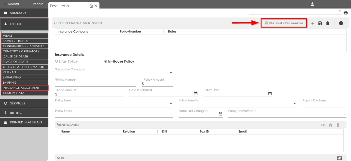 For 2-minute Insurance Assignments, click on the Client Tab, Insurance Assignment, and click the Enroll E-Pay Insurance button!