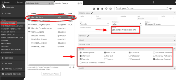 Be sure all of your required signers are identified properly in your case for both your staff and your family members. Inside the case, click Client, and indicate which staff will be assigned to the case and signing documents. Then click Family/Friends and be sure each family member has their specific role identified. Also be sure that family members have emails.