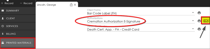 Once your form(s) are set-up with E-Signature, you’ll find the forms in either Billing or Printed Materials.