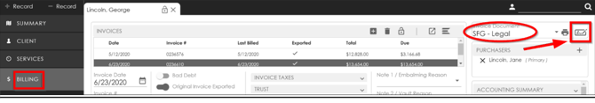 In Billing: Find your form in the drop-down menu. Once you choose the document, this icon