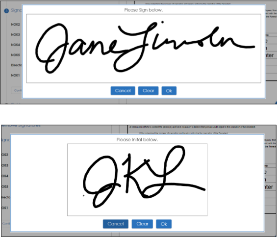 The Funeral Director can also sign IN PERSON at this time by clicking Sign and Initial. If their signature is saved in Settings, the form will be signed automatically when you click Sign.