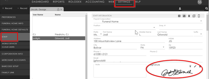 Autofill: Staff’s signatures are added under Settings/Staff.
