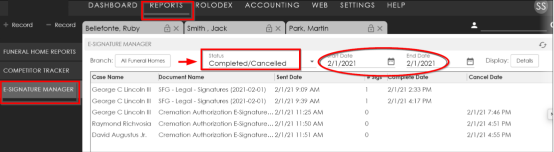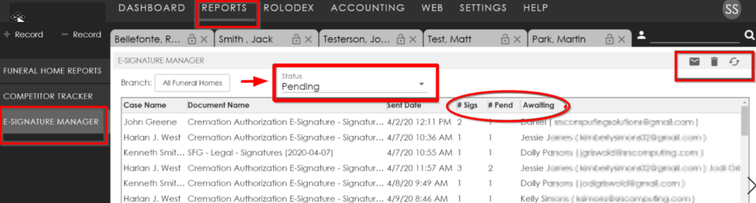 This tool provides an at-a-glance reference to the status of all signature requests sent.