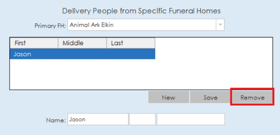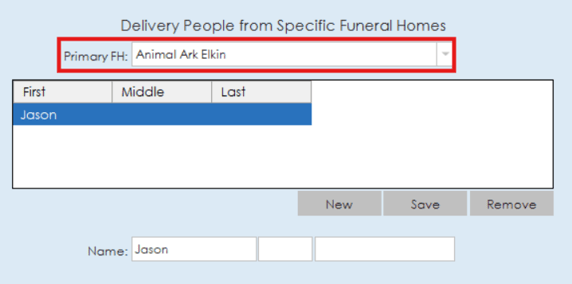 Funeral homes each have their own list of delivery people, and specific funeral homes can be selected from the primary FH drop down list.