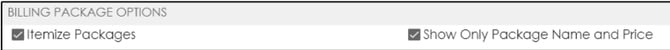 Below are the descriptions of how packages will populate based on if either Itemize Package or Show Only Package Name and Price boxes are checked or not: